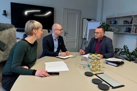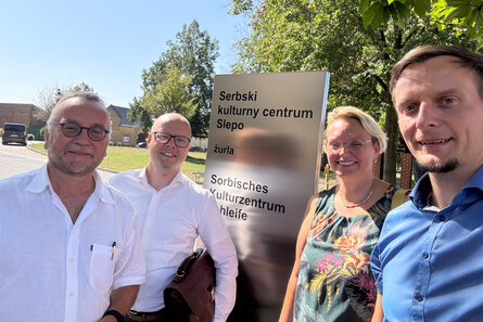Mit dem Vorsitzenden der Domowina Dawid Statnik und der Geschäftsführerin Judit Šołćina traf sich Dr. Jens Baumann im Haus der Sorben in Bautzen zum Austausch.