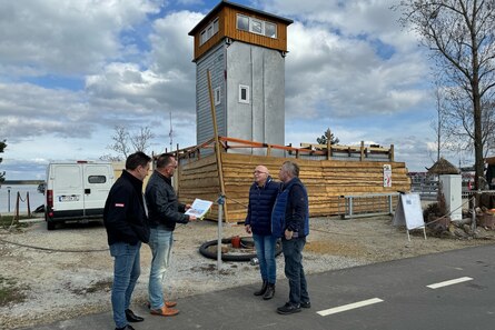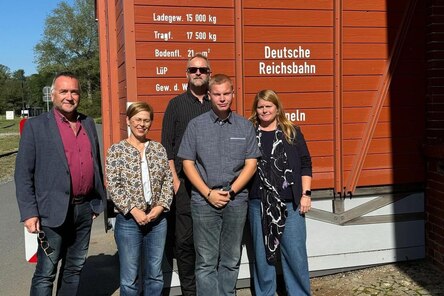 Gemeinsam mit dem Vorstand der Stiftung Erinnerung Begegnung Integration informierte sich der Beauftragte für Vertriebene und Spätaussiedler über das Informationszentrum am Geierswalder See.