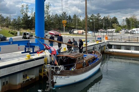 Einige Jahre mussten vergehen, bevor es nun soweit war: die Seabreeze hat wieder nach dem Umbau am Geierswalder See einen eigenen festen Liegeplatz und konnte nun gekrant werden.